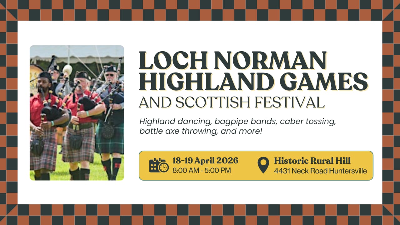 🏴 2026 Loch Norman Highland Games and Scottish Festival | Historic Rural Hill | Huntersville | 04/18–04/19 | More